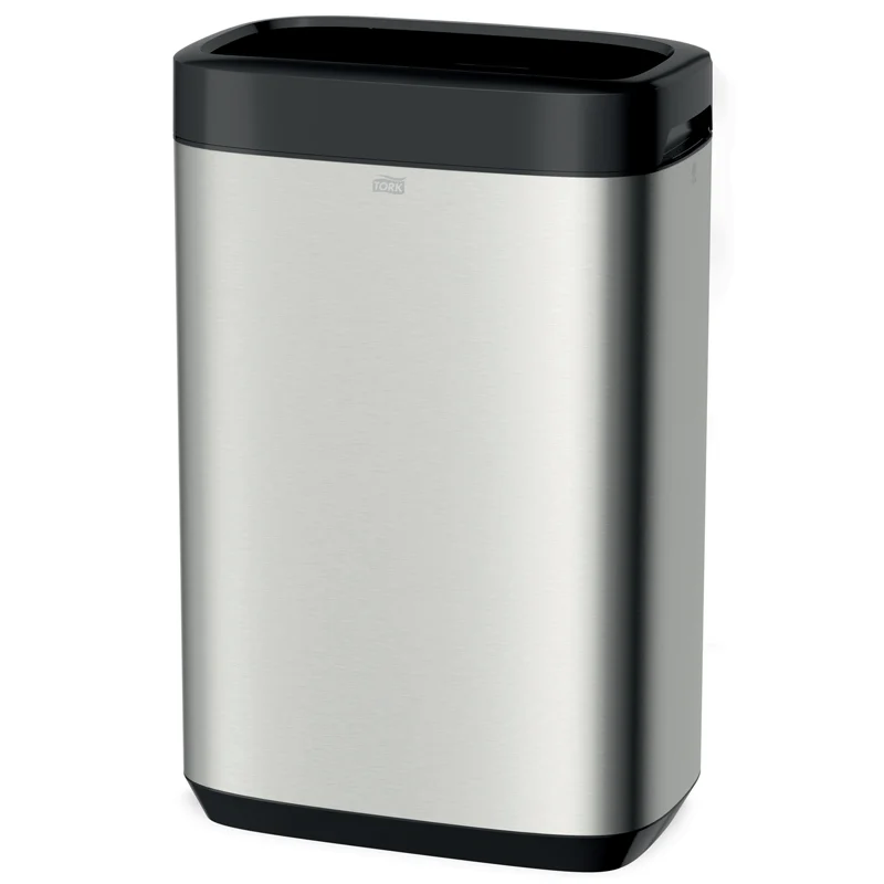 Контейнер для мусора подвесной Tork объемом 50 л выполнен из нержавеющей стали и пластика. Размеры изделия: 61.4×39.5×25.3 см. Вес: 4.93 кг. Цвет контейнера – серебристый, основание и верхняя часть – черный.