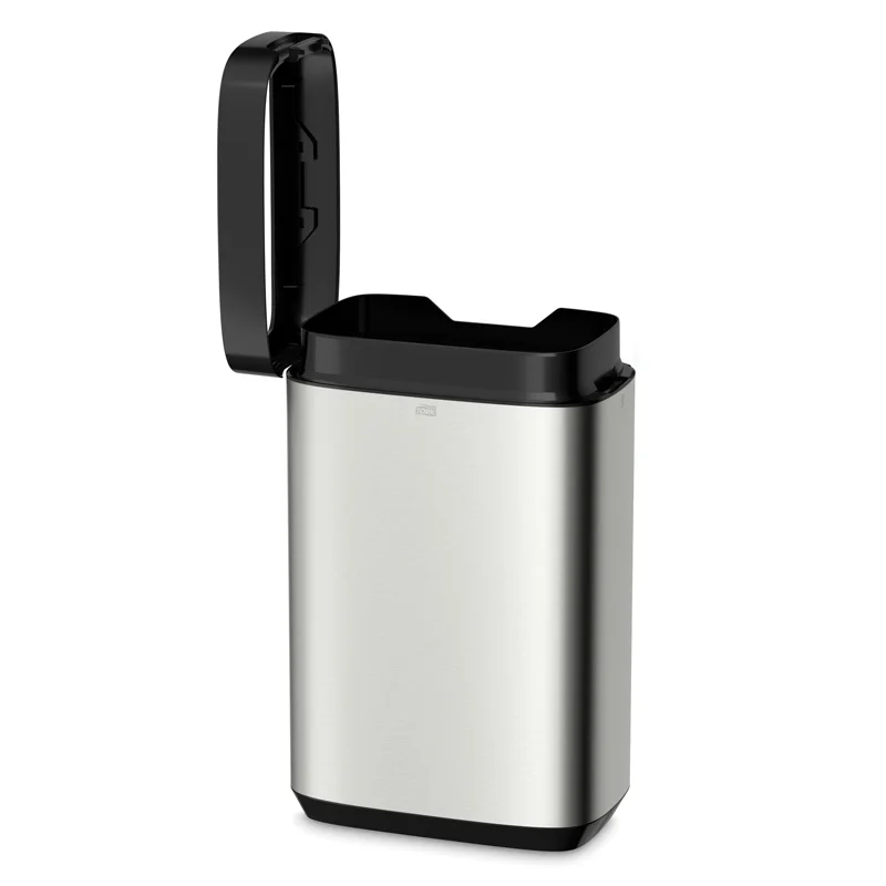 Корзина может устанавливаться как на полу, так и монтироваться на стену. Ободок корзины открывается вбок, с возможностью выбора направления открытия – влево или вправо, что обеспечивает дополнительное удобство.