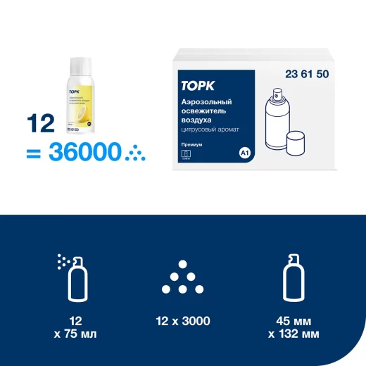 Сменный баллон для освежителя воздуха Tork Premium, A1, 75мл Россия Tellus (tork) Premium A1, 236150, цитрус, 75мл