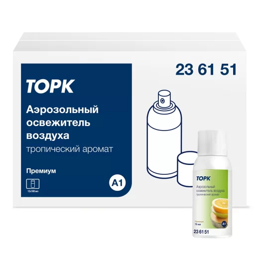 Предназначен для использования в диспенсерах Tork А1 для аэрозольного автоматического освежителя воздуха, обеспечивает сухое распыление. При средней интенсивности использования в ароматическом диффузоре 1 сменного баллончика хватает на 3 месяца. Эффективно и успешно контролируйте запах в туалетной комнате с тропическим аэрозольным освежителем воздуха Tork. Попробуйте наш продукт и убедитесь в его эффективности и качестве!