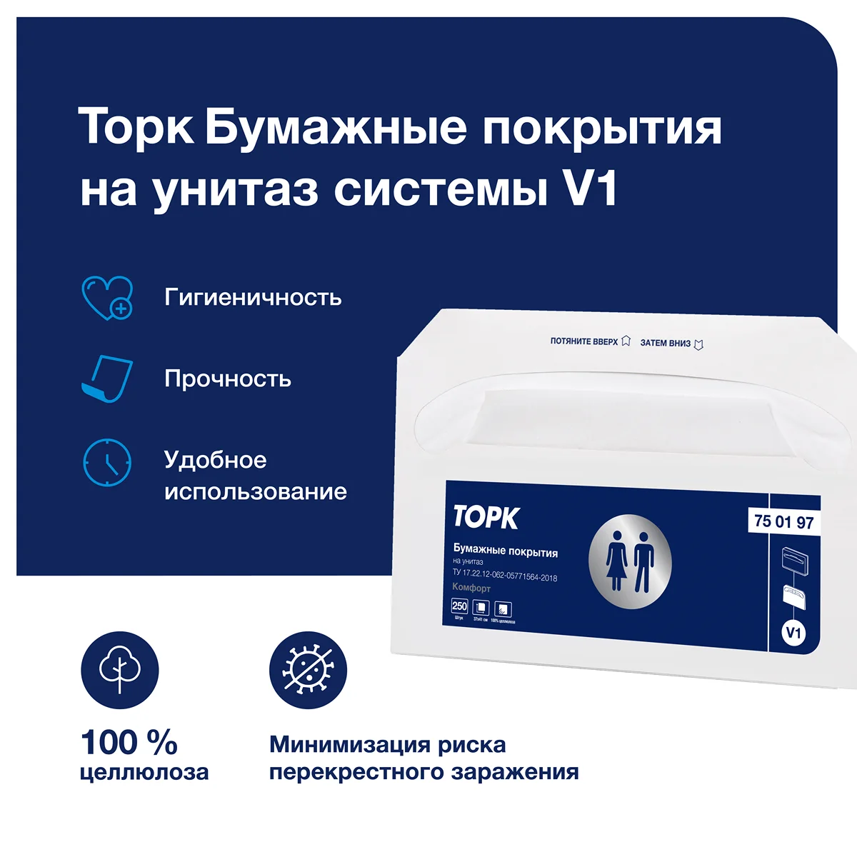 Индивидуальные покрытия на унитаз Tellus (tork) Advanced V1, 750197, белые, 250шт