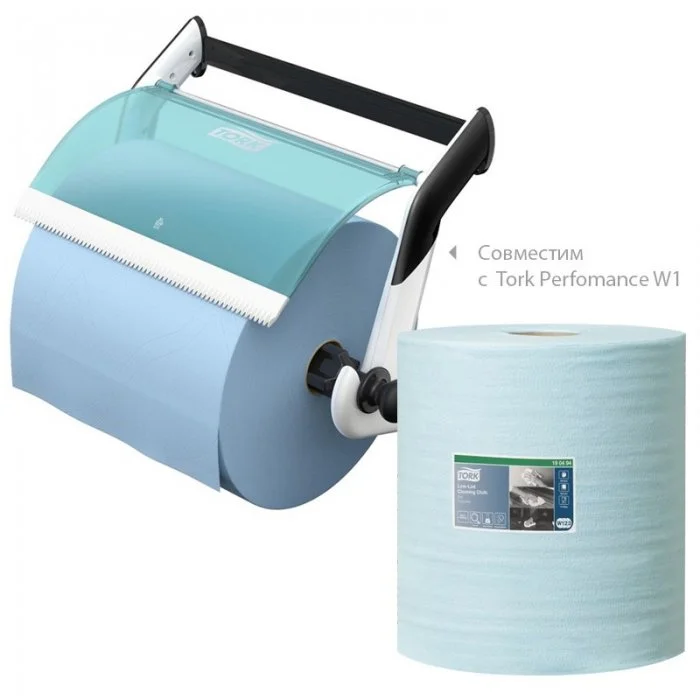 Материал совместим с настенными и напольными диспенсерами Tork систем W1, W2 и W3, которые обеспечивают защиту материала от влаги и грязи, а также полистовую подачу для уменьшения расхода и объема отходов.