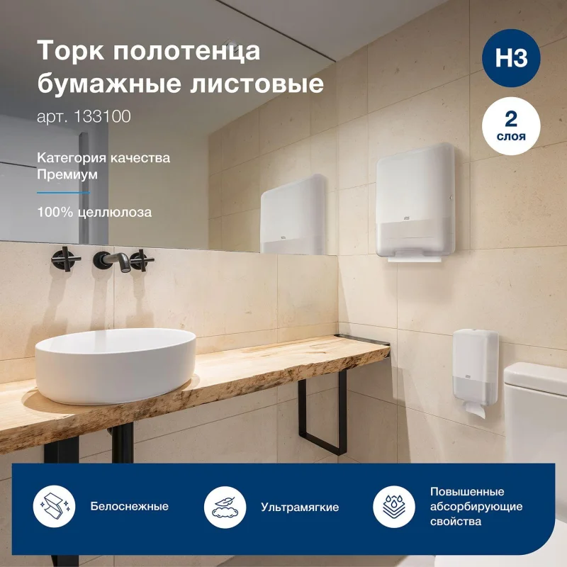 Полотенца «Tellus/Торк Н3» идеально подходят для использования в офисах, кафе, ресторанах, медицинских учреждениях и других местах с высокой проходимостью.