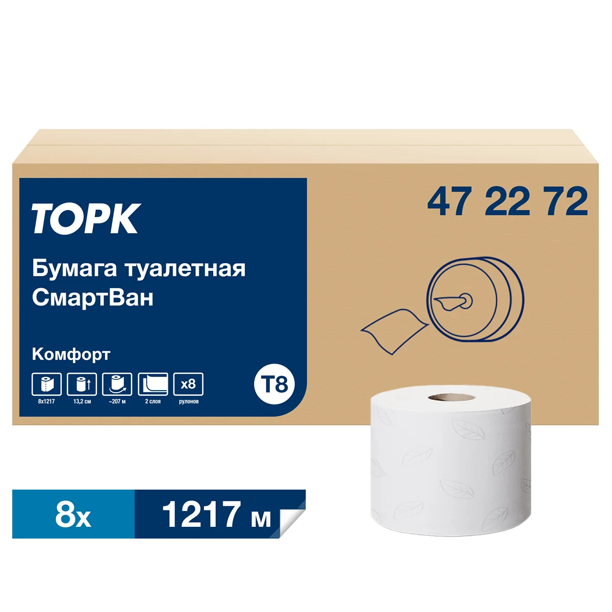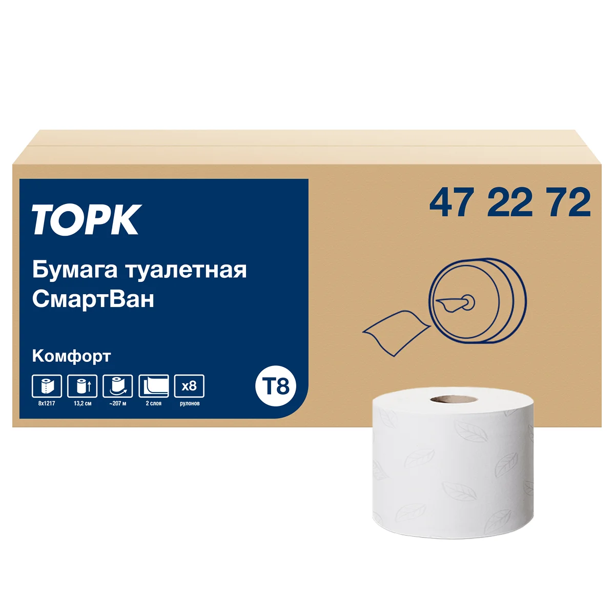Бумага туалетная рулонная с центральной вытяжкой Tellus (Торк/Tork) SmartOne T8 2-слойная белая 8 рулонов по 206.9 метров (472272)