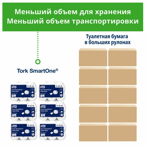 Рулоны Tellus (Торк/Tork) SmartOne высокой емкости подходят для туалетных комнат с низкой и средней посещаемостью, к которым предъявляются высокие требования. Структура бумаги гарантирует быстрое растворение, а также снижение общего расхода. При этом использование такой бумаги сведет к минимуму риск закупорки канализационных труб. Бумага выглядит аккуратно и производит приятное впечатление. Современная упаковка, удобна в хранении и использовании.