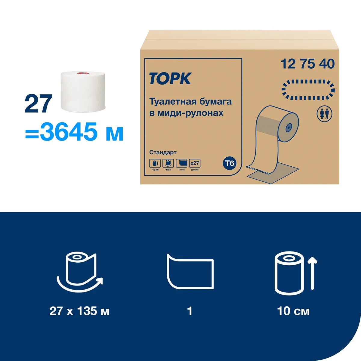 Поставляется упаковками по 27 рулонов.