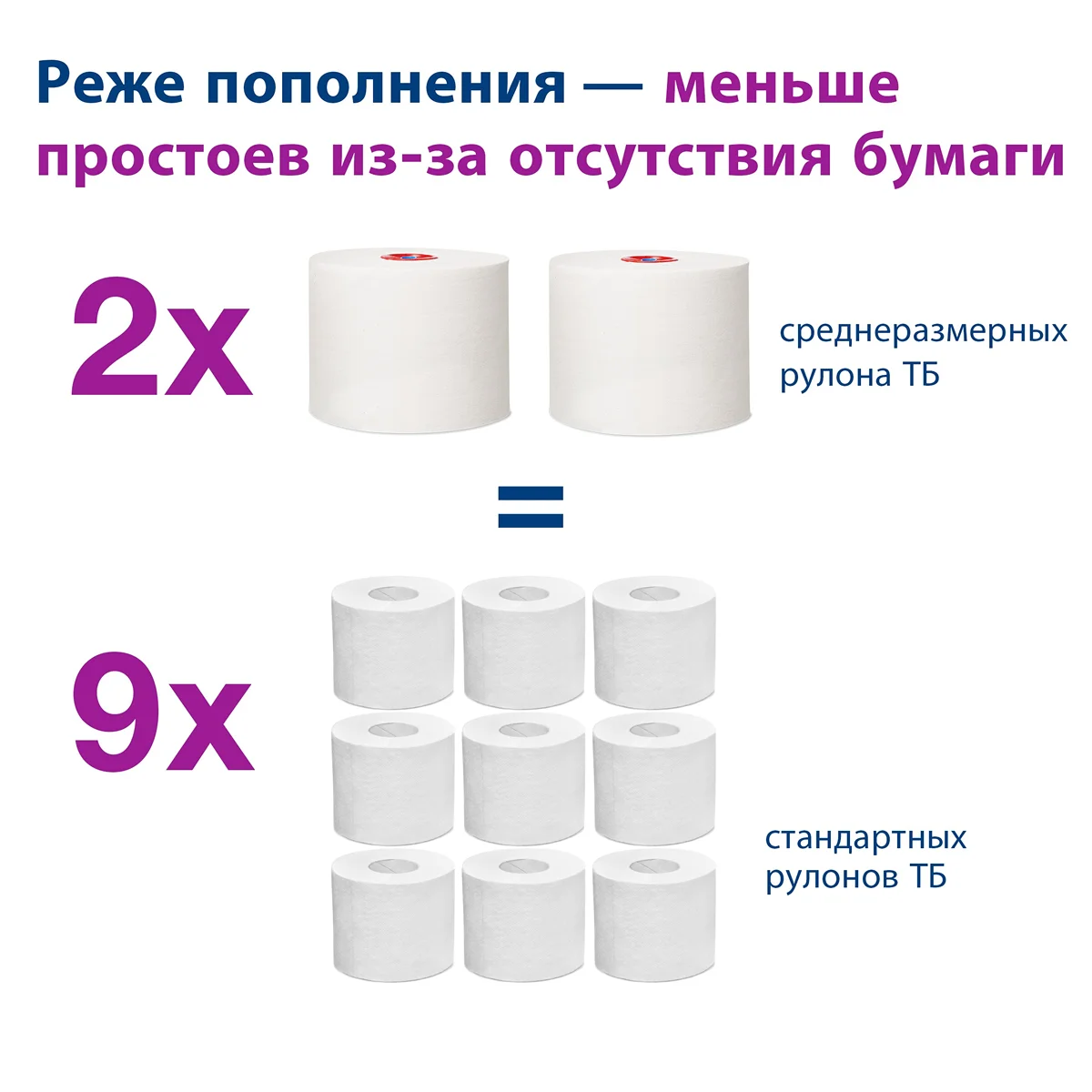 Однослойная туалетная бумага подходит для туалетных комнат с низкой и средней посещаемостью, где основное внимание уделяется уровню удовлетворённости гостей. Мягкая туалетная бумага Tellus удовлетворяет базовые потребности, предлагая хорошее соотношение цены и качества. Компактные миди-рулоны: каждый из них равнозначен 4-5 стандартным туалетным рулонам. Доступная по цене однослойная туалетная бумага с хорошим соотношением цены и качества.
