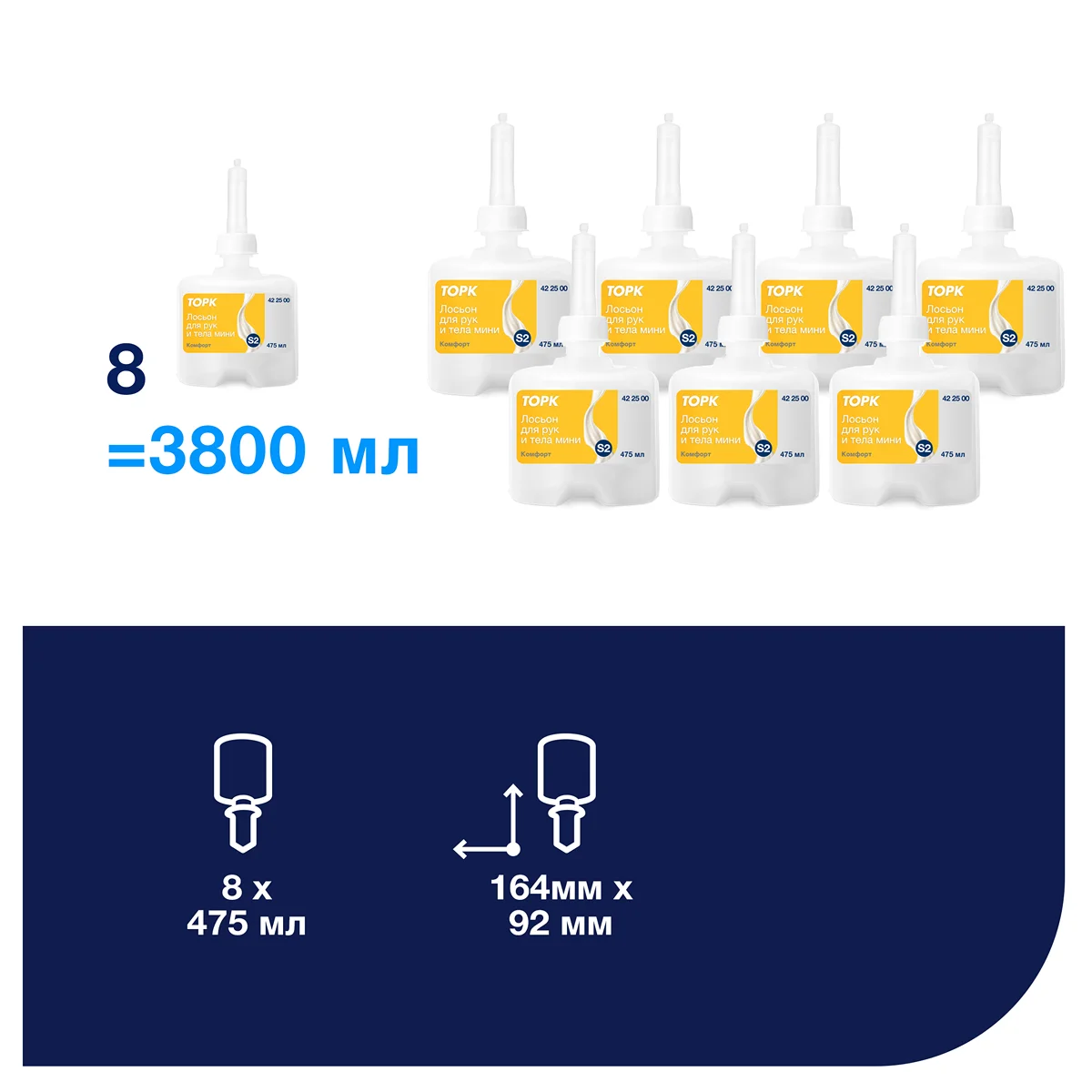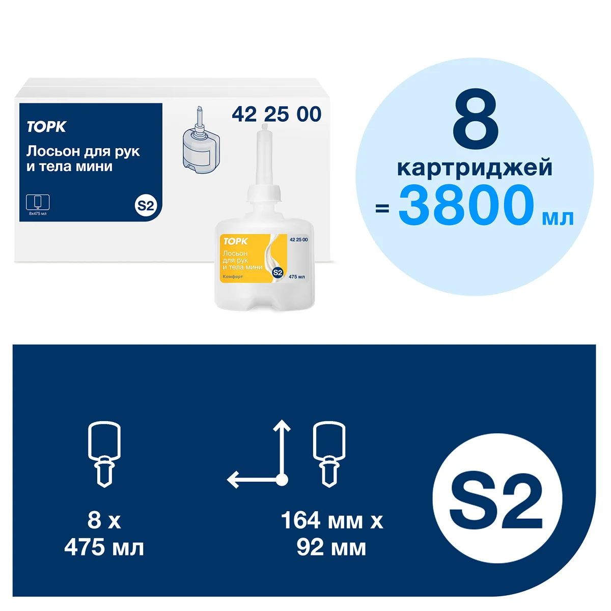 Без отдушек, pH-нейтральный лосьон. Быстро впитывается, не оставляет ощущения жирности. Продукт на 99% состоит из биоразлагаемых компонентов. Обеспечивает простоту обслуживания и интуитивно понятную процедуру перезаправки менее чем за 10 секунд.