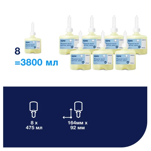 Предложите посетителям жидкое мыло мягкое с цветочным ароматом (шиповник, можжевельник, цветы), которое отлично подходит для разных типов кожи. Торк жидкое мыло мягкое содержит ряд экстрактов, которые стимулируют обновление и восстановление кожи, способствуют её питанию, увлажнению и смягчению. ПАВ, используемые в составе продукта, оказывают бережное очищающее действие во время мытья рук. Подходит для использования в мини-диспенсерах для жидкого мыла Торк. Доказано, что диспенсеры Tork просты в обслуживании и обеспечивают высокий уровень гигиены рук для всех пользователей. – Обладает легким цветочным ароматом. – pH – нейтральное жидкое мыло. – Продукт на 99% состоит из биоразлагаемых компонентов. – Подтвержденные простота обслуживания и интуитивно понятная процедура перезаправки менее чем за 10 секунд. – Гигиеничность: герметичный картридж снижает риск перекрестного заражения. – Картридж подлежит переработке и сжимается в процессе использования, что позволяет уменьшить объем отходов